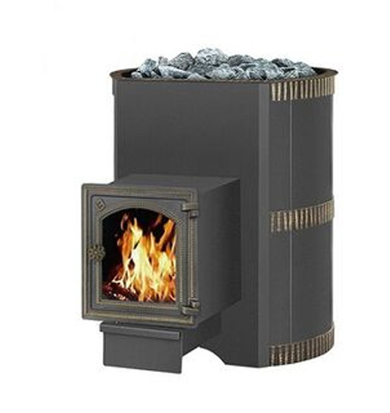 Дровяные печи-каменки предназначены для отопления парильного помещения бани, получения пара и нагрева воды. Данные Печи разработаны на основе изучения отечественных и зарубежных образцов. Преимущества таких печей: толщина металла, надежный сварной шов, увеличенный срок службы. Эту печь можно нагружать большим количеством камней и смело ставить на нее бак с водой. Данные печи изготовлены из конструкционной стали толщиной до 8мм и имеют минимальное количество сварных швов, а в самых уязвимых местах подверженных воздействию высоких температур используются детали, отлитых из чугуна (колосник, зуб отбойник) На всех печах установлены чугунные дверцы в отличии от металлической дверцы чугунные не деформируются и стекла на них не трескаются.