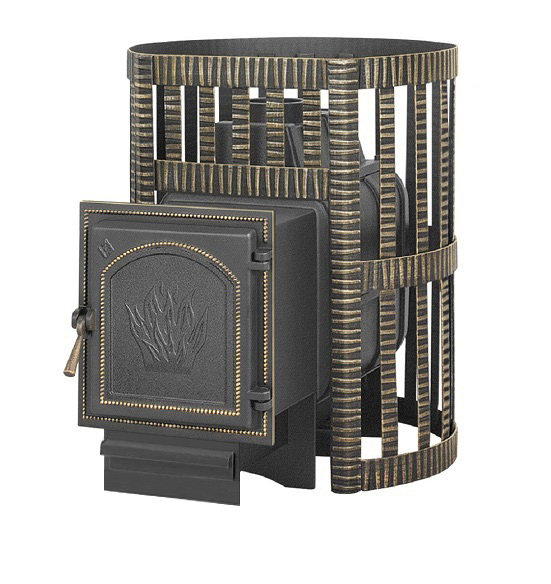 Банная чугунная печь Легенда Ковка 16 (271) укомплектована чугунной герметичной дверцей Везувий 271. Конвекционно-вентилируемый кожух "Ковка" изготовлен из металлической текстурированной полосы покрашенной термостойкой краской и покрытая патиной «Бронза».