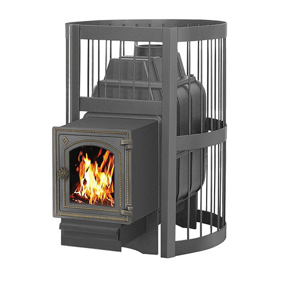 Банная чугунная печь Легенда Ковка 28 (ДТ-4С) укомплектована чугунной герметичной дверцей Везувий 205 с жаропрочным стеклом «Schott Robax». Конвекционно-вентилируемый кожух "Ковка" изготовлен из металлической текстурированной полосы покрашенной термостойкой краской и покрытая патиной «Бронза».