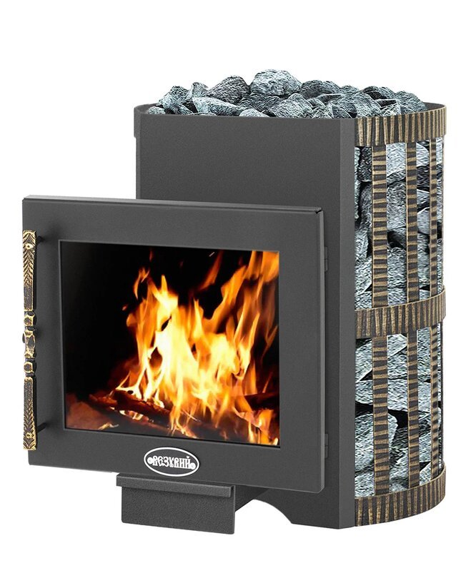 Дровяные печи-каменки предназначены для отопления парильного помещения бани, получения пара и нагрева воды. Данные Печи разработаны на основе изучения отечественных и зарубежных образцов. Преимущества таких печей: толщина металла, надежный сварной шов, увеличенный срок службы. Эту печь можно нагружать большим количеством камней и смело ставить на нее бак с водой. Данные печи изготовлены из конструкционной стали толщиной до 8мм и имеют минимальное количество сварных швов, а в самых уязвимых местах подверженных воздействию высоких температур используются детали, отлитых из чугуна (колосник, зуб отбойник) На всех печах установлены чугунные дверцы в отличии от металлической дверцы чугунные не деформируются и стекла на них не трескаются.