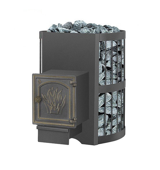 Дровяные печи-каменки предназначены для отопления парильного помещения бани, получения пара и нагрева воды. Данные Печи разработаны на основе изучения отечественных и зарубежных образцов. Преимущества таких печей: толщина металла, надежный сварной шов, увеличенный срок службы. Эту печь можно нагружать большим количеством камней и смело ставить на нее бак с водой. Данные печи изготовлены из конструкционной стали толщиной до 8мм и имеют минимальное количество сварных швов, а в самых уязвимых местах подверженных воздействию высоких температур используются детали, отлитых из чугуна (колосник, зуб отбойник) На всех печах установлены чугунные дверцы в отличии от металлической дверцы чугунные не деформируются и стекла на них не трескаются.