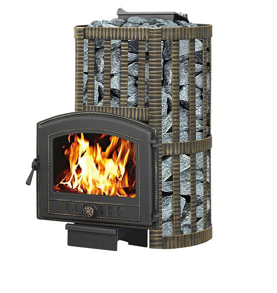 Банная чугунная печь Ураган Ковка 16 (224) укомплектована чугунной герметичной дверцей Везувий 224 с жаропрочным стеклом «Schott Robax». Закрытая каменка изготовлена из стали и вмещает в себя не менее 60кг камней. Конвекционно-вентилируемый кожух "Ковка" изготовлен из металлической текстурированной полосы покрашенной термостойкой краской и покрытая патиной «Бронза». В конструкции данной печи предусмотрен топочный тоннель, при помощи которого печь топится из соседнего помещения, смежного с парильным.