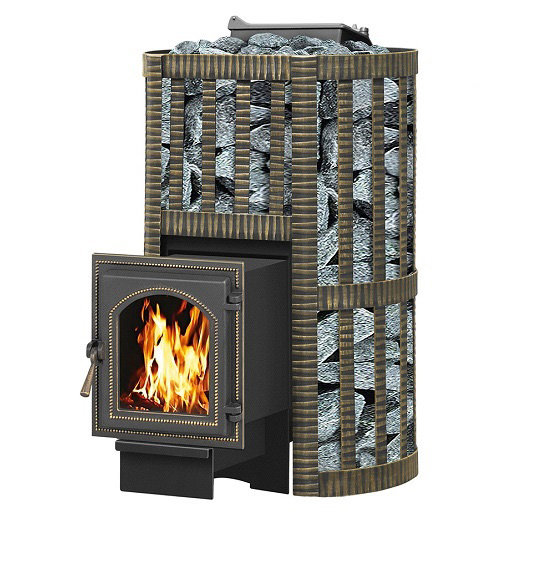 Банная чугунная печь Ураган Ковка 16 (270) укомплектована чугунной герметичной дверцей Везувий 270 с жаропрочным стеклом «Schott Robax». Закрытая каменка изготовлена из стали и вмещает в себя не менее 60кг камней. Конвекционно-вентилируемый кожух "Ковка" изготовлен из металлической текстурированной полосы покрашенной термостойкой краской и покрытая патиной «Бронза». В конструкции данной печи предусмотрен топочный тоннель, при помощи которого печь топится из соседнего помещения, смежного с парильным.