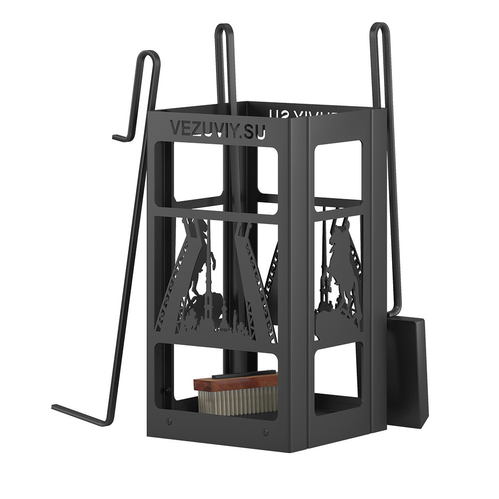 Набор предназначен для ухода за очагом, как во время горения, так и для чистки топки после него. Набор состоит и богра, щетки и совка. Все элементы кованные.