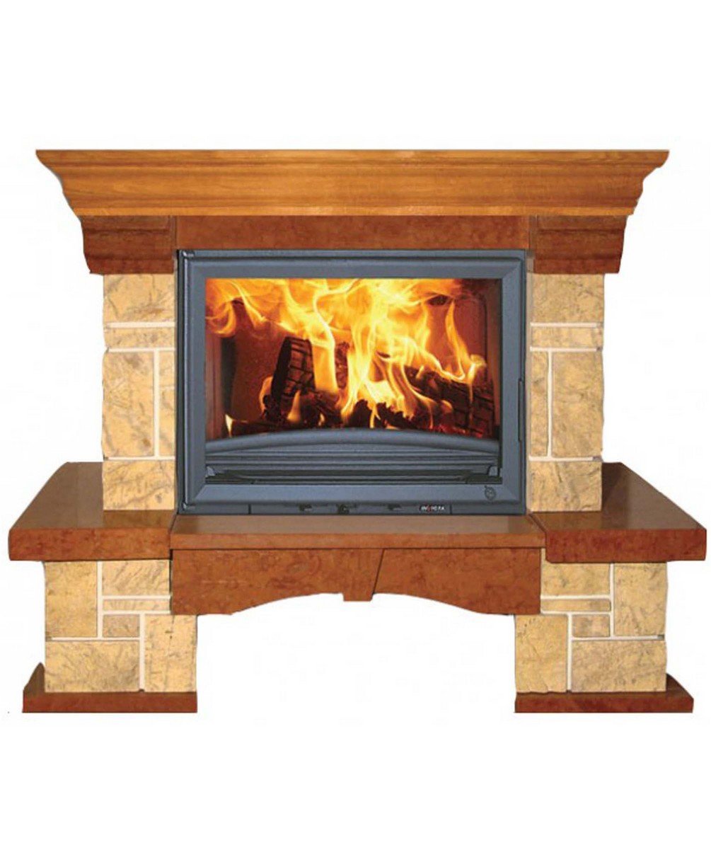 Облицовка Jabo Marmi (Польша) предназначена для декоративной отделки каминной топки. Облицовка изготовлена из колотого мрамора Silvia Yellow (оттенки кремово-жёлтого) и полированного мрамора Rosso Verona (оттенки коричнево-красного). Балка изготовлена из массива дуба. Подходящие топки серии 700 с прямым стеклом. Облицовка в пристенном или угловом исполнении.
