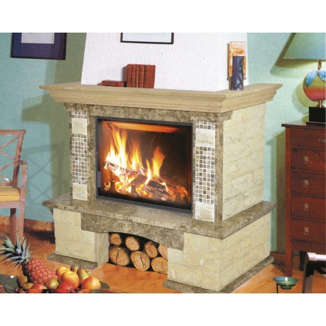 Облицовка предназначена для декоративной отделки каминной топки. Облицовка изготовлена из песчаника и полированного мрамора Perlado Dark (оттенки светло-коричневого). Балка изготовлена из массива дуба. Подходящие топки серии 700 с прямым стеклом. Облицовка в пристенном или угловом исполнении.