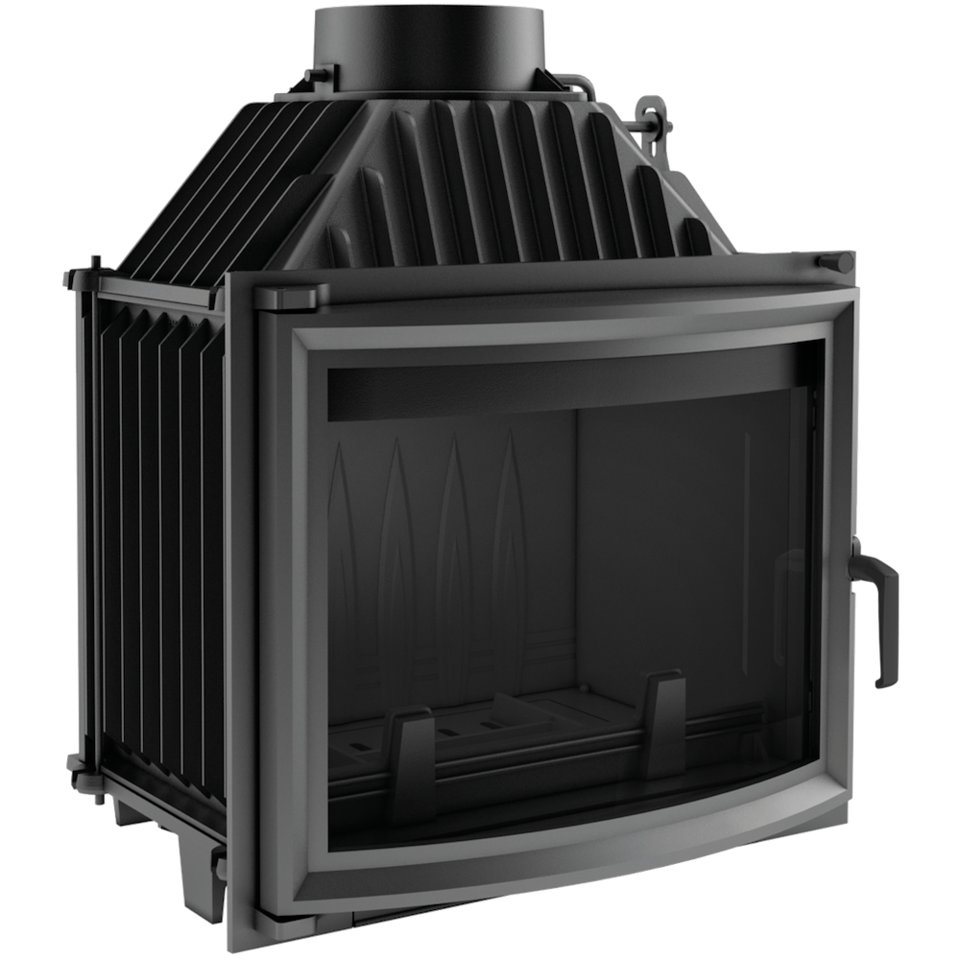 Недорогая чугунная топка для загородного дома. Полукруглое стекло способно марки "Робакс" выдерживает 800оС. Для продуктов горения предусмотрен зольный ящик. Среднее время горения составляет 4-5 часов.