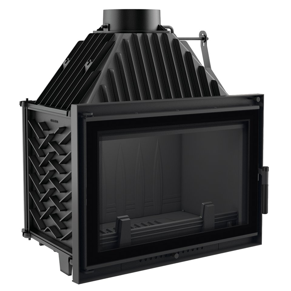Данная топка оснащена двойным стеклом и зольником - системой отверстий в дне топки, для удаления пепла. Дизайнеры польской компании Kratki дают нам возможность выбрать дизайн дверцы самостоятельно. Есть несколько вариантов: латунь, латунь антик, хром. Для удобства монтажа есть подиум для камина. Отличие топки DECO от обычной в шелкографии по периметру стекла. Это придает обзору огня дополнительную красоту.