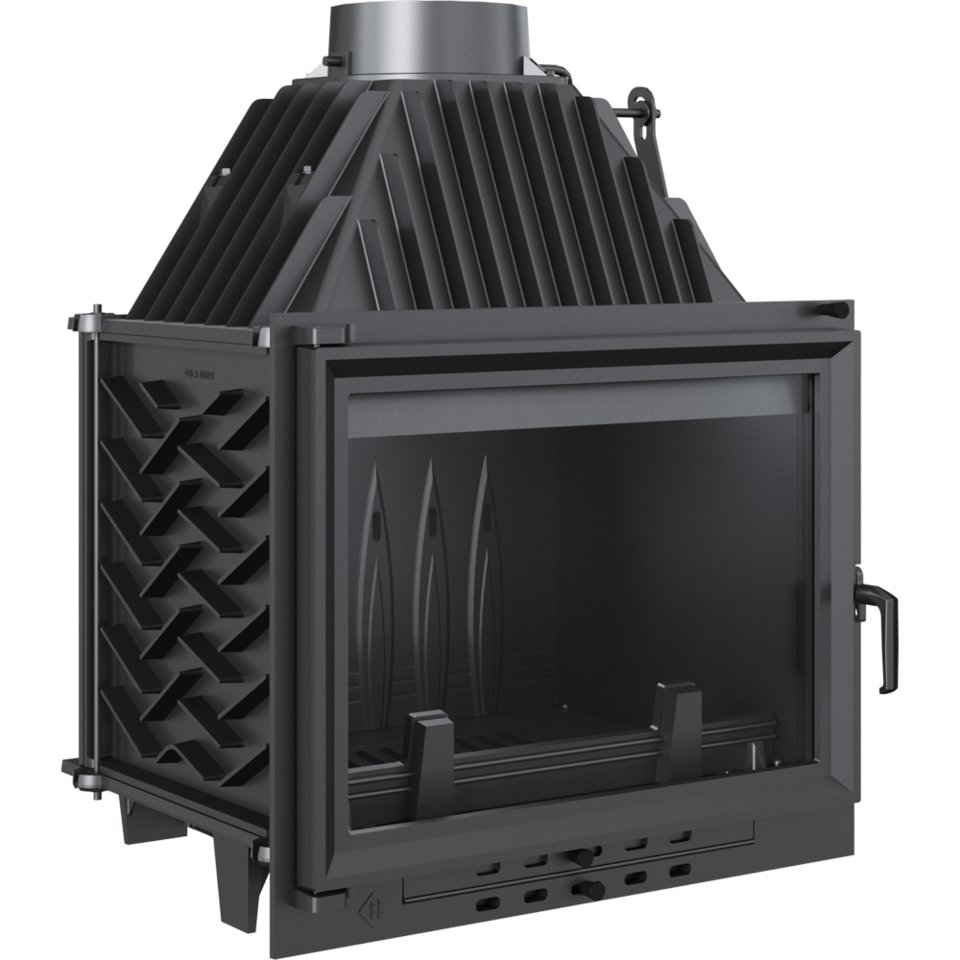 Каминная топка ZUZIA изготовлена из высококачественного чугуна толщиной 8 мм. Площадь теплообмена увеличена за счет ребер жесткости. Ручная регулировка подачи воздуха осуществляется за счет встроенного шибера и зольного ящика. Герметичная дверца оснащена жаростойким стеклом с системой самоочистки и специальной ручкой предохраняющей от ожогов. Камин имеет систему дожига, которая вместе с другими техническими решениями влияет на очень хорошие параметры сжигания.