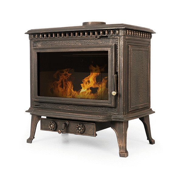 Чугунная дверца печи оснащена удобной ручкой с герметичным затвором, исключающим проникновение внутрь помещения продуктов сжигания топлива, и витрокерамическим стеклом, позволяющим Вам наслаждаться всей красотой живого огня. Благодаря устройству печи стекло будет всегда оставаться чистым за счет того, что сажа и смолы выгорают без остатка. Вращающаяся колосниковая решетка повышает эффективность сжигания твердого топлива.