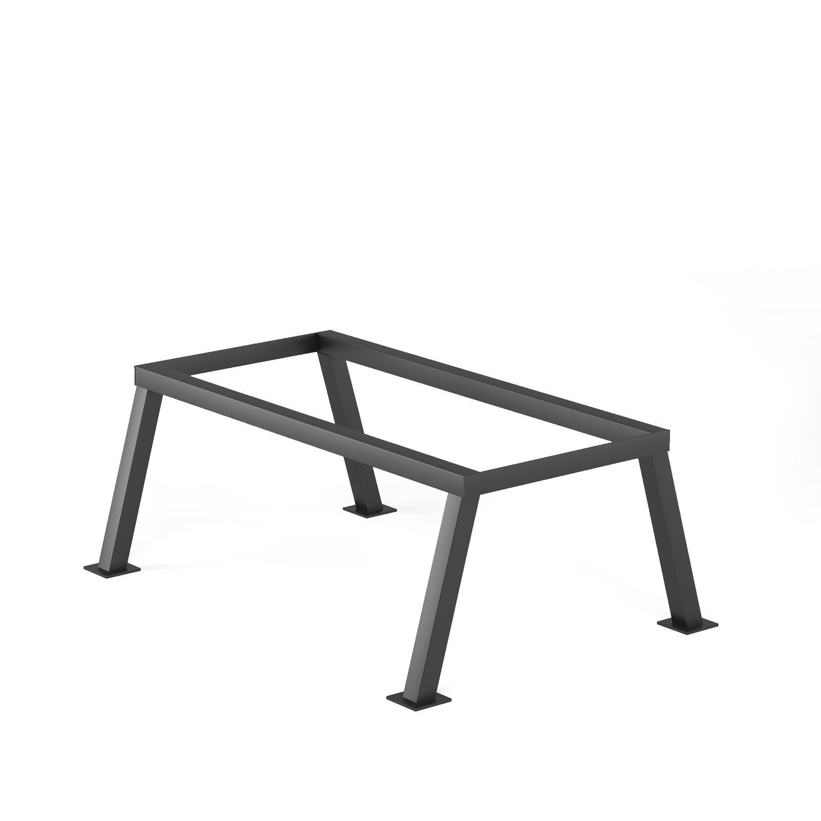 Подставка сделана из стального квадратного профиля толщиной 25 миллиметров и устанавливается под печь во время монтажа. Печь Везувий АОГТ 00 размещается на подставке, после чего монтируется дымоход.