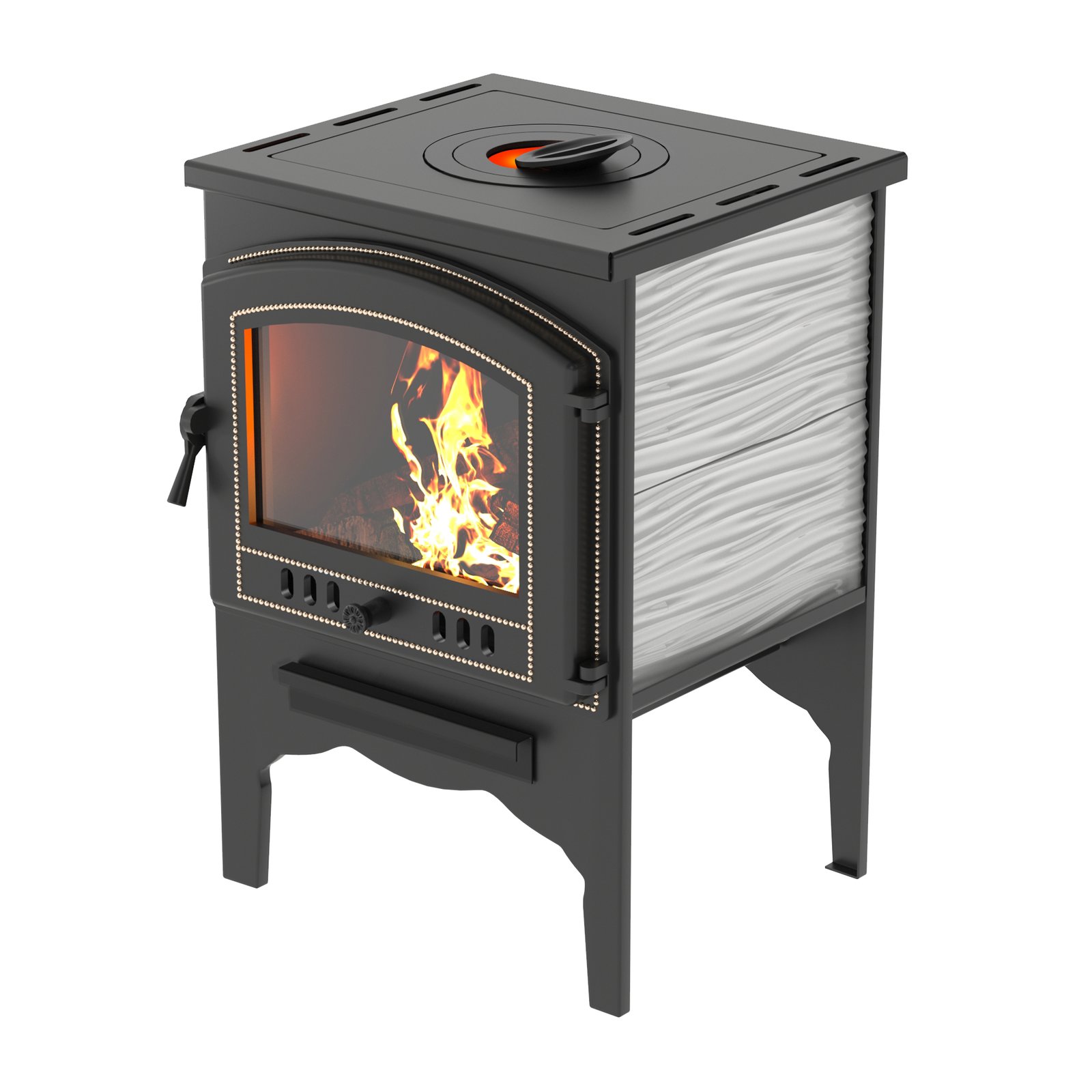 Отопительная печь «Везувий» В10 предназначена для установки в различных хозяйственных и жилых помещениях. Печь изготовлена из котловой стали 09Г2С. Верхняя чугунная плита может использоваться для приготовления пищи. Печь укомплектована чугунным колосником и чугунной герметичной дверцей Везувий 224 с огнеупорным стеклом и системой самоочистки. Печь облицована Керамическими вставками.