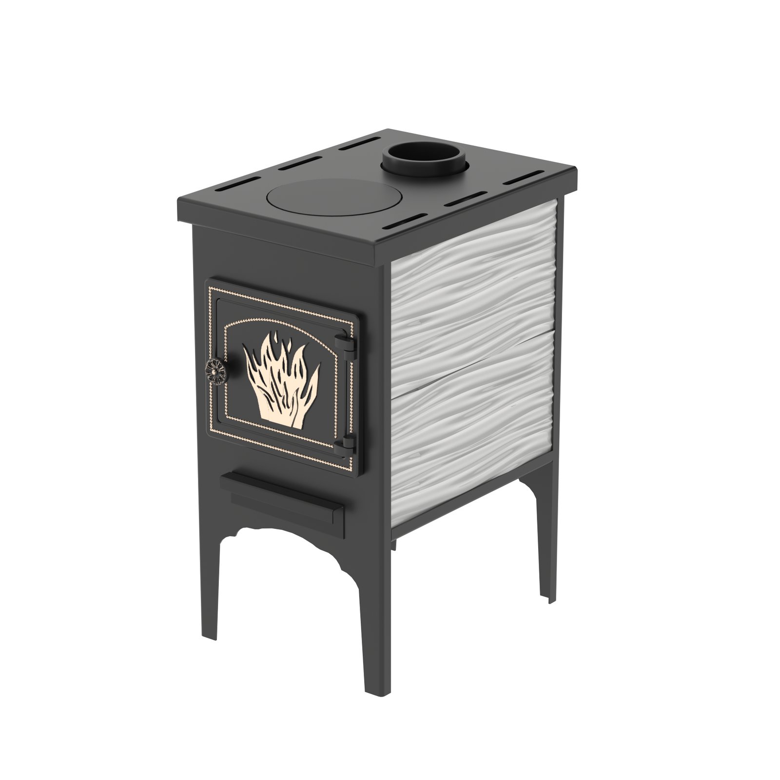 Отопительная печь «Везувий» В5 предназначена для установки в различных хозяйственных помещениях небольшого размера. Печь изготовлена из специальной конструкционной стали. Верхнюю горизонтальную поверхность можно использовать для приготовления пищи. Печь укомплектована чугунным колосником и чугунной не герметичной дверцей Везувий ДТ-3. Печь облицована Керамическими вставками.