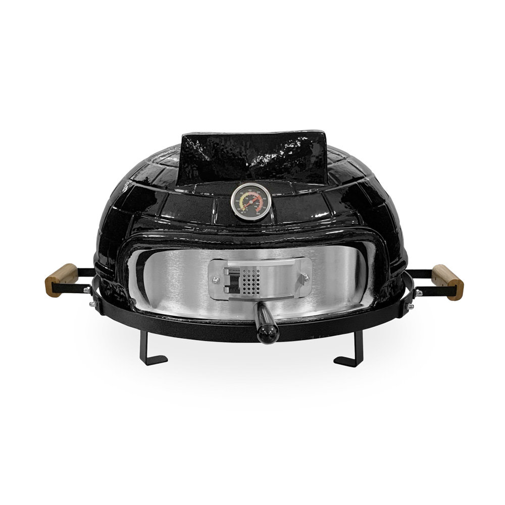 Вентиляционные отверстия позволяют управлять поступающим потоком воздуха для поддержания желаемого жара. Удобная дверца с ручкой оснащена заслонкой для контроля процесса приготовления без потери тепла.