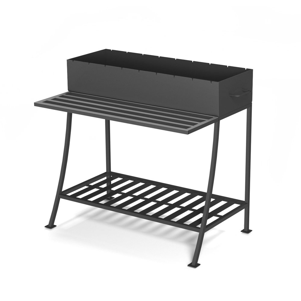 В основании мангала предусмотрена решетка, на которой можно хранить дрова или мешок углей.