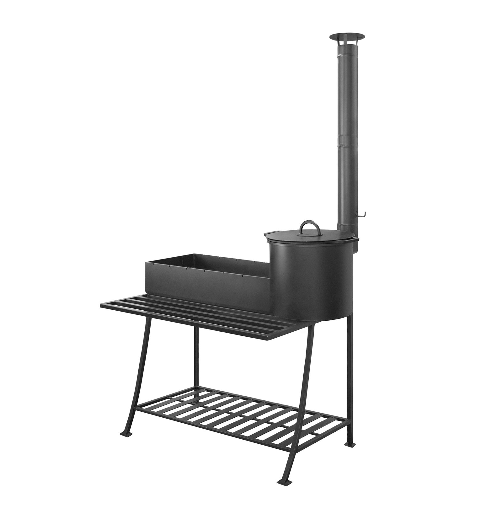 Мангал "Надежный" получил свое название из-за того, что произведен из 6мм котловой стали, покрытый термостойкой кремнийорганической эмалью, также особенностью мангала является печь под казан с высокой вытяжной трубой самоварного типа. На мангале можно одновременно готовить пищу на шампурах и в казане. Так как мангал стационарный для защиты от осадков в комплекте поставляется крышка для мангальной вставки и печи под казан.