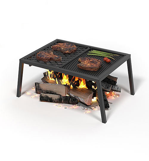 Высота подставки — 27 сантиметров, позволяет удобно подкладывать дрова, перемещать и ворошить угли.