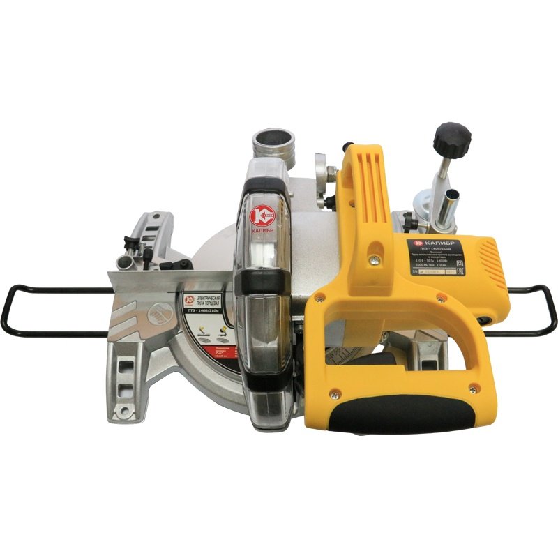 Пила торцевая (торцовочная) электрическая Калибр ПТЭ-1400/210м предназначена для выполнения прямых, боковых и косых распилов и резов в древесине, ДСП, ДВП, пластмассах. Заготовка на рабочем столе может быть повёрнута на угол от 0 до 45° за счёт поворотного стола. На основной рукоятке пилы расположены: рычаг блокировки защитного кожуха и клавиша выключателя. Конструкция пилы позволяетосуществлять пропилы, кроме вертикальных (0 - 90°): косые пропилы материала под заданным углом от 0 до 45° относительно задней кромки заготовки в обе стороны (смещением поворотного основания)и наклонные пропилы с заданным углом (от 0 до 45°) относительно вертикальной оси влево. Металлическая станина пилы устанавливается на ровную горизонтальную поверхность. Для крепления пилы на верстаке (рабочем столе) в ножках станины имеются 4-е крепёжных отверстия. При пилении длинных заготовок в станину крепятся 2-е дополнительные опоры. Для отвода стружки в комплект поставки входит пылесборник, который крепится к патрубку неподвижного кожуха. К патрубку можно подключить промышленный пылесос. В комплект поставки входят: пылесборник, щётки графитовые, дополнительные опоры для распиливания длинных заготовок.Защитный кожух;Возможность подключения промышленного пылесоса.Возможность регулирования глубины пропила;Возможность установки угла поворота пильного стола;Возможность установки угла наклона режущего блокаВозможность установки угла наклона режущего блокаПрямой, косой, наклонный и комбинированный пропилы.
