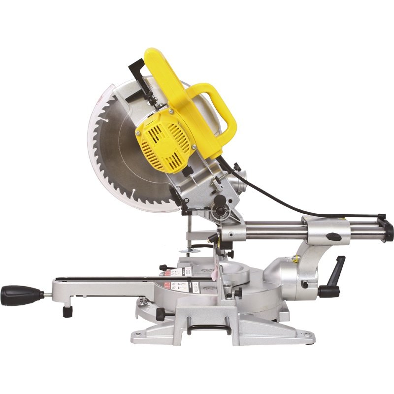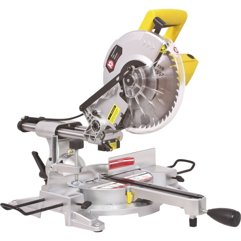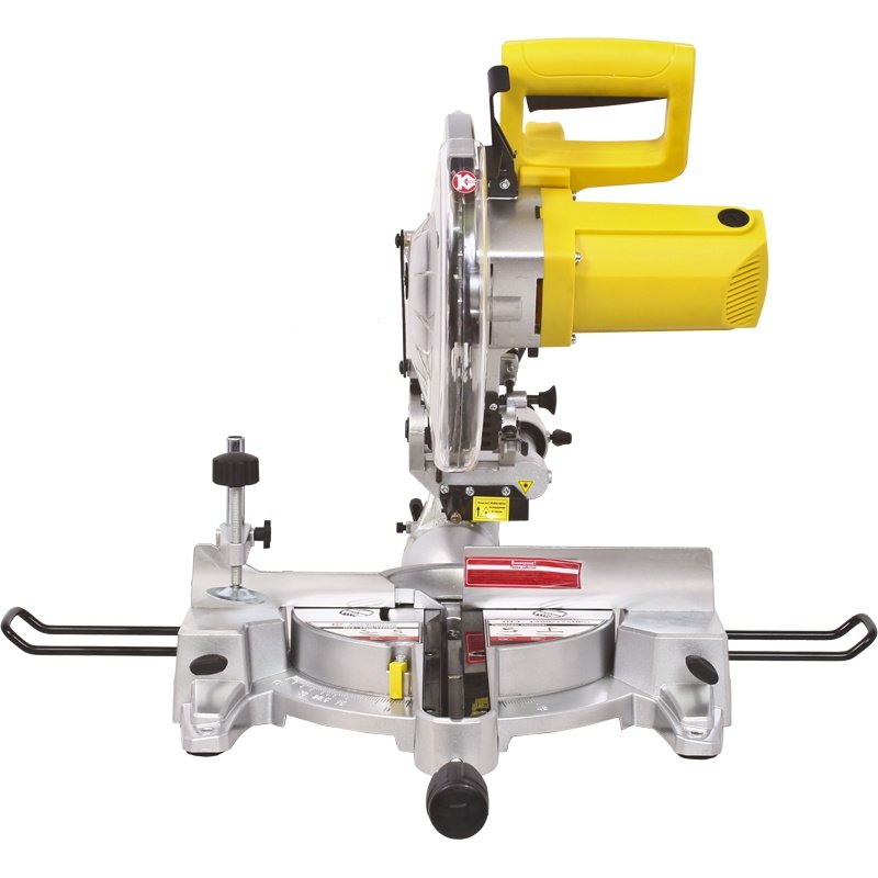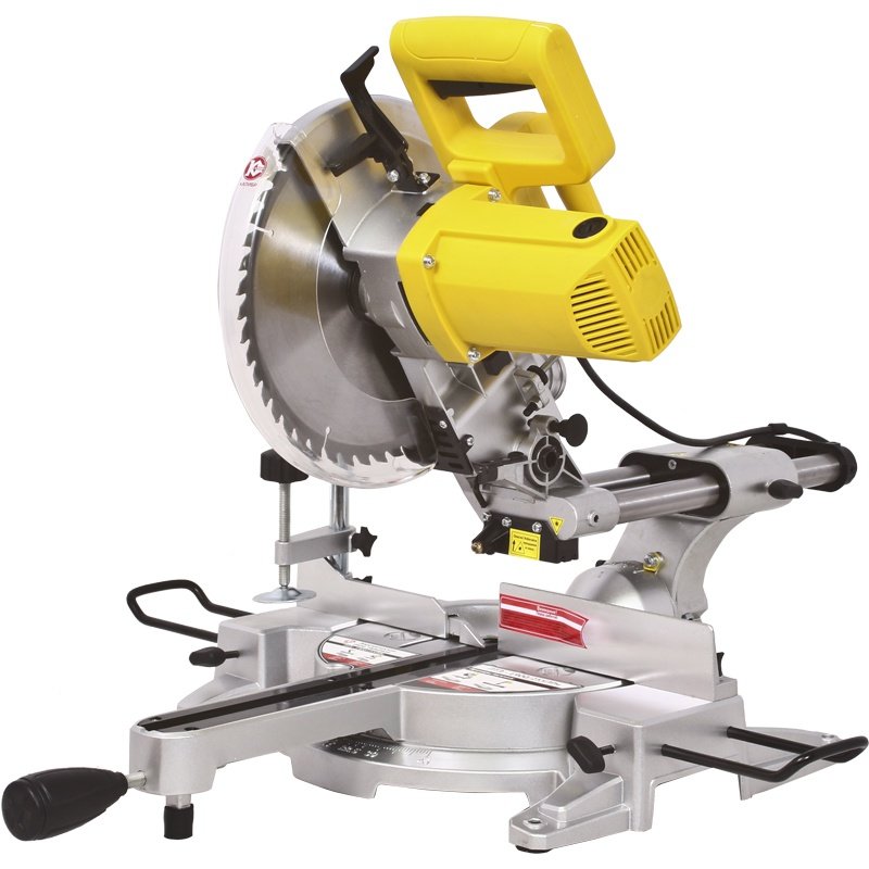 Пила торцевая (торцовочная) электрическаяПила торцевая (торцовочная) электрическая Калибр ПТЭ-1900/255ПРм Калибр ПТЭ-1900/255ПРм предназначена для выполнения прямых, боковых и косых распилов и резов в древесине, ДСП, ДВП, пластмассах. Заготовка на рабочемстоле может быть повёрнута на угол от 0 до 45° за счёт поворотного основания. На основной рукоятке пилы расположены: рычаг блокировки защитного кожуха и клавиша выключателя. Конструкция пилы позволяет осуществлять: распиловку материала под заданным углом от 0 до 45° относительно задней кромки заготовки в обе стороны, заданным углом от 0 до 45° относительно вертикальной оси влево и продольного пиления при перемещении вдоль направляющих. Металлическая станина пилы устанавливается на ровную горизонтальную поверхность. Для крепления пилы на верстаке (рабочем столе) в ножках станины имеются 4-е крепёжных отверстия. При пилении длинных заготовок в станину крепятся 2-е дополнительные опоры. Распиливаемая заготовка плотно прижимается к параллельному упору и крепится к рабочему столу струбциной. Для отвода стружки в комплект поставки входит пылесборник, который крепится к патрубку неподвижного кожуха. К патрубку можно подключить промышленный пылесос. На суппорте вертикального перемещения пилы расположен блок лазер, подсвечивающий линию реза при пилении. Электрическая схема пилы имеет дроссель плавного пуска, что облегчает запуск двигателя. В комплект поставки входят: пылесборник, щётки графитовые, а также дополнительные опоры для распиливания длинных заготовок. Лазерная направляющая;Плавный пуск;Защитный кожух;Возможность подключения промышленного пылесоса;Возможность регулирования глубины пропила;Возможность установки угла поворота пильного стола;Возможность установки угла наклона режущего блока;Возможность продольного движения режущего блока.
