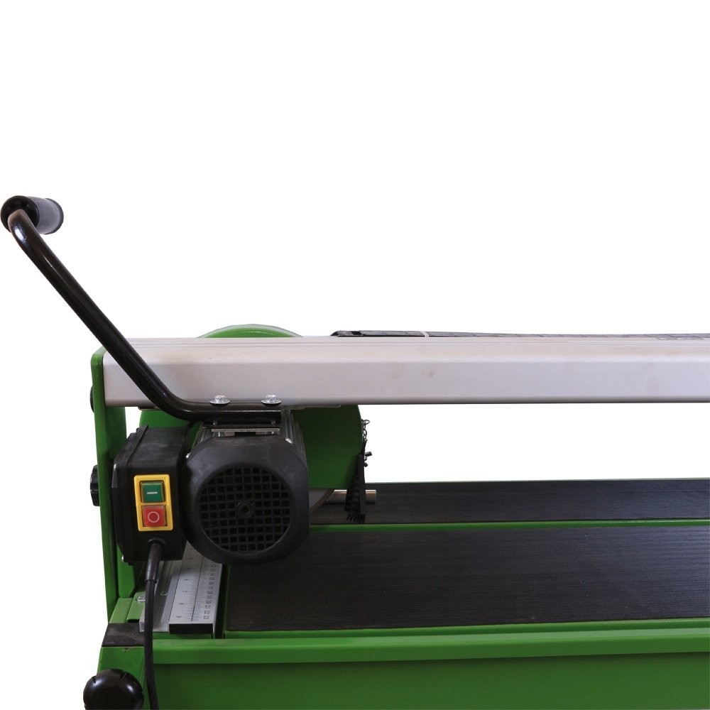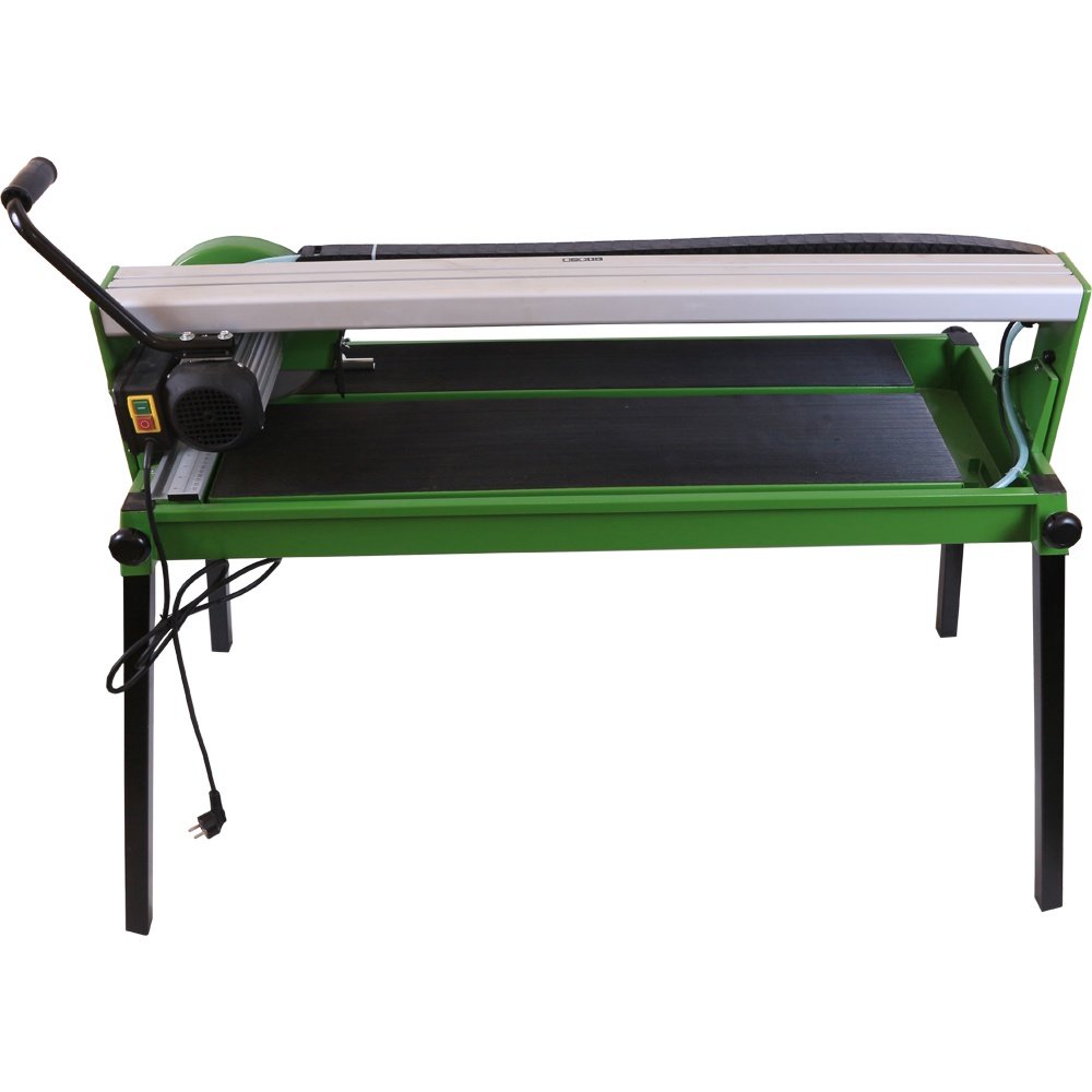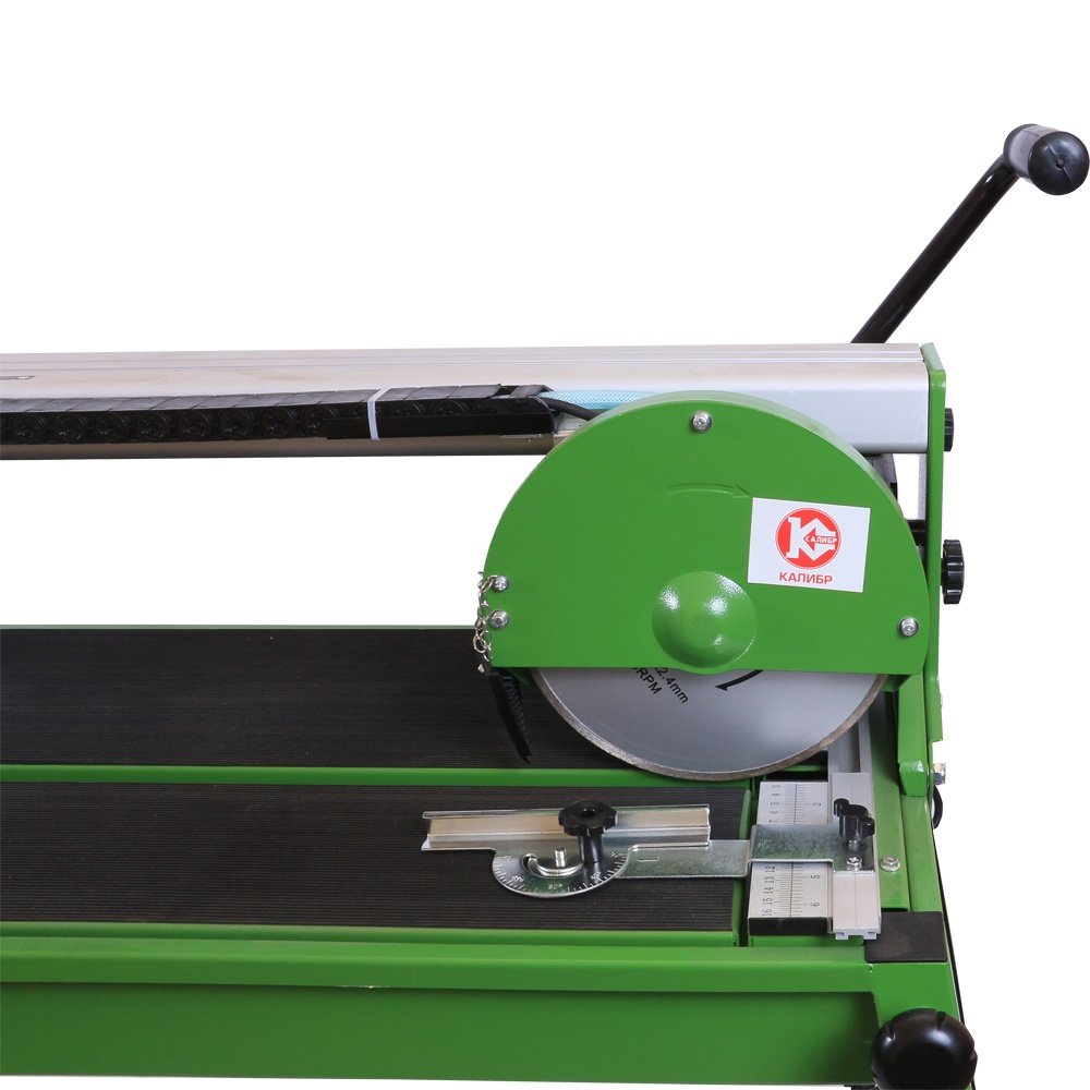 Электрический плиткорез со столом Электрический плиткорез со столом Калибр ЭПЛ-230/920СТКалибр ЭПЛ-230/920СТ предназначен для резки с водяным охлаждением всех видов натуральной и искусственной керамической, облицовочной, напольной и тротуарной плитки алмазным кругом под прямым углом и углами до 45°. Головка режущая (кронштейн с двигателем, блоком управления и отрезным кругом), перемещаясь по салазкам вдоль рабочего стола, осуществляет подачу рабочего инструмента для реза. На кронштейне закреплён шланг, подающий насосом воду из поддона на отрезной круг и заготовку для охлаждения, во время работы. Резиновый шлангоукладчик обеспечивает дистанционирование шланга от рабочей зоны круга и перемещение его вместе с головкой режущей. Салазки вместе с режущей головкой могут поворачиваться по направляющим наклона, меняя угол резания от вертикального до 45° (в сторону, противоположную двигателю).Кожух защитный круга;Резка с водяным охлаждением;Направляющий упор с метрической шкалой;Устойчивость на поверхности и максимальное снижение вибраций за счёт опорных ножек.