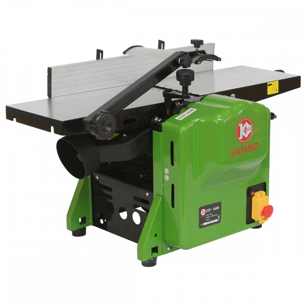 Станок строгально-рейсмусовый с возможностью обработки верхней (рейсмусование) или нижней (строгание) поверхности заготовки Станок строгально-рейсмусовый с возможностью обработки верхней (рейсмусование) или нижней (строгание) поверхности заготовки Калибр ССР-1600 Калибр ССР-1600 предназначен исключительно для строгания заготовок из древесины, обработка других материалов не допустима. Два ножа, закреплённые в барабане, являются рабочим инструментом рубанка. Коллекторный электродвигатель с двойной изоляцией обеспечивает максимальную электробезопасность при работе. В комплект поставки входит параллельный упор, крепящийся кронштейнами к суппорту задней опоры станка. Упор обеспечивает при строгании вертикальную опору обрабатываемой заготовки. Возможность поворота упора на угол до 45° от вертикального положения, обеспечивает опору заготовок с неперпендикулярными углами.автоматическая подача заготовки;установка глубины строгания;регулируемый строгальный стол;малые габариты