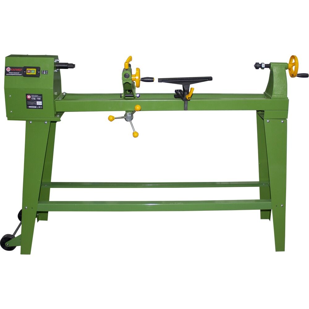 Токарный деревообрабатывающий станок Калибр СТД-700 предназначен для обработки деталей из древесины с поверхностями, имеющими форму тел вращения. Станок имеет четыре скорости вращения. Наличие двух колес обеспечивает удобную транспортировку.регулировка скоростимагнитный пускательасинхронный электродвигатель