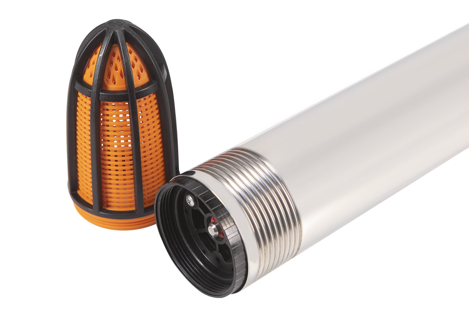 Внешний съёмный фильтр предотвращает попадание грязи и песка. В случае загрязнения достаточно промыть фильтрующую сетку. Фильтр не случайно имеет форму конуса. Такая конструкция значительно облегчает процесс опускания насоса в скважину при «ступенчатом» соединении обсадных труб.