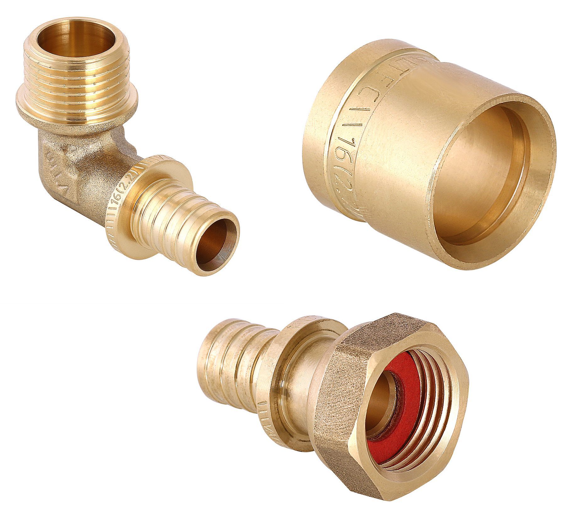 Корпусы фитингов и надвижные гильзы изготавливаются из сантехнической латуни марки CW614N по EN 12165 (соответствует марке ЛС 59-2 по ГОСТ 15527-2004).
