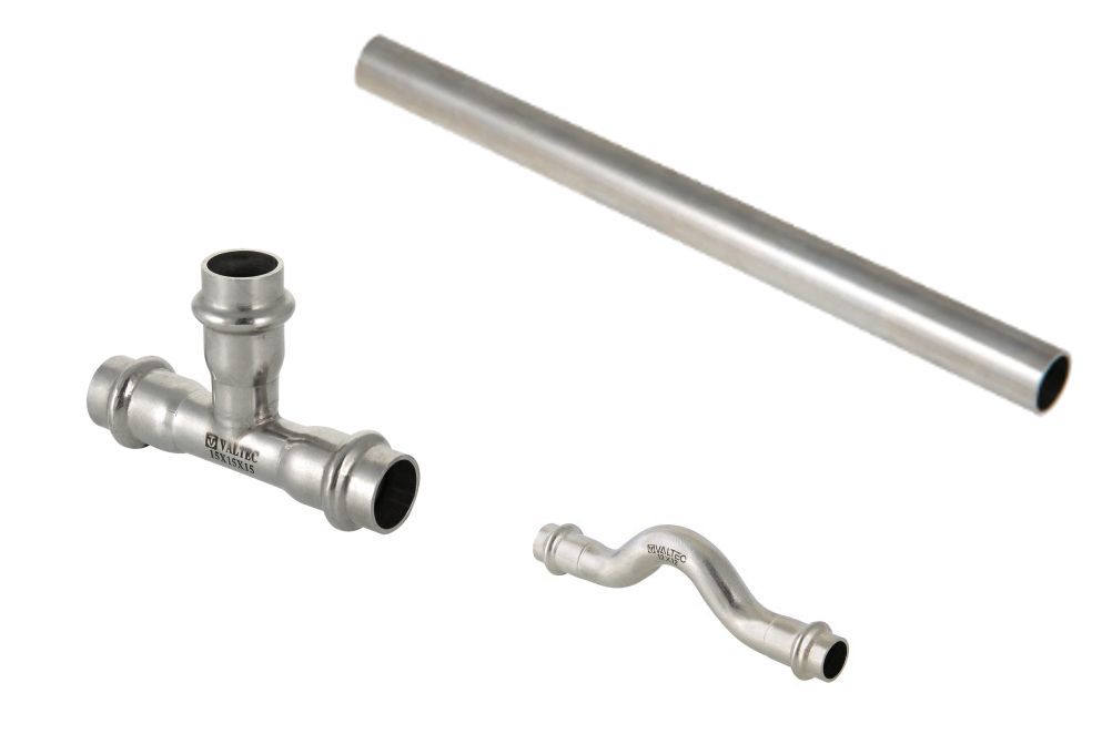 Бренд VALTEC предлагает вашему вниманию модельный ряд труб и фитингов из нержавеющей стали марки AISI 304 типоразмеров от 18 до 54 мм, а также инструмент необходимый для их монтажа.