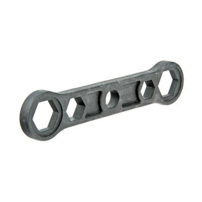 Ключ для пробок, переходников (футорок) и воздухоотводчиков секционных алюминиевых и биметаллических радиаторов. Выполнен из нейлона. Использование этого инструмента исключает механическое повреждение финишного покрытия указанных изделий. Размеры фитингов и воздухоотводчиков "под ключ" – 42, 32, 22 мм.
