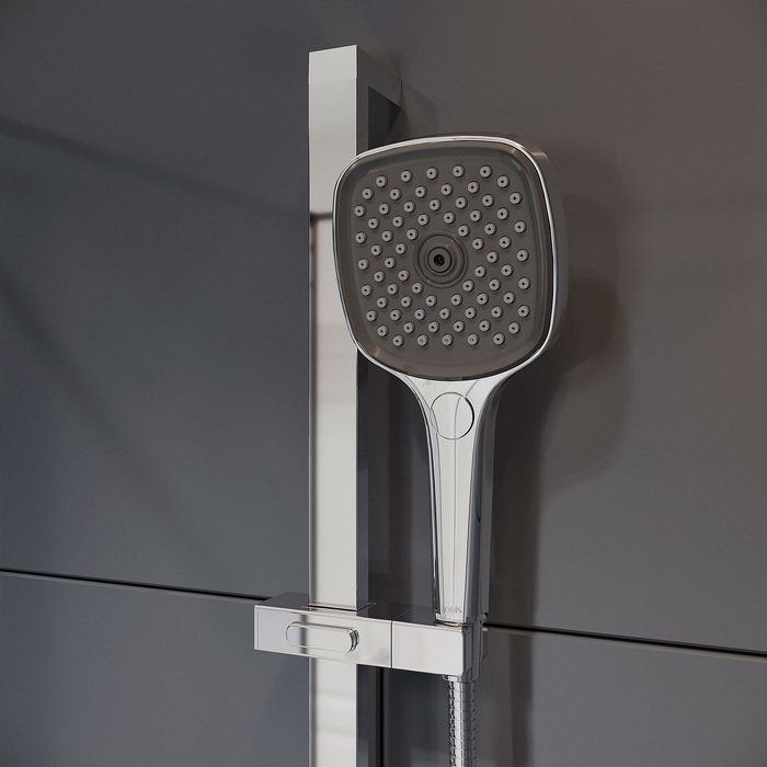 Стильное и инновационное решение для душевой зоны – лейка из коллекции Slide. Центральная форсунка этой модели работает в режиме точечного массажа: интенсивно и сильно. Благодаря своему строению и функции самоочищения Cyclone она легко пропускает водяной вихрь, убирающий даже мельчайшие загрязнения. Душевую лейку, оснащенную функцией Cyclone, не придется разбирать, чтобы почистить. Три микроотверстия в остальных форсунках лейки Slide позволяют добиться одновременно объемного и мягкого потока воды. Получите максимум удовольствия от эффекта настоящего СПА при любом режиме работы лейки.
