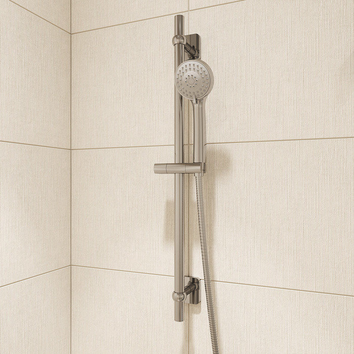 Хромированную стойку для душа из коллекции Bild отличают выраженные геометрические формы и прямоугольный держатель для лейки с регулируемым углом наклона. Держатель позволяет изменить угол подачи водной струи до комфортного. Стойка Bild подойдет как для установки над ванной, так и в зоне душевого ограждения. Благодаря свободным креплениям, которые можно установить на любой высоте, стойку можно закрепить на уже имеющихся отверстиях в стене или выбрать подходящую точку крепежа.