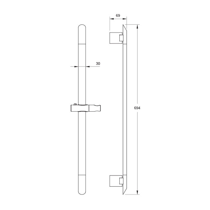 Стойка для душа. Комплектация: держатель лейки, крепления. Материал: нержавеющая сталь. Высота стойки: 694 мм