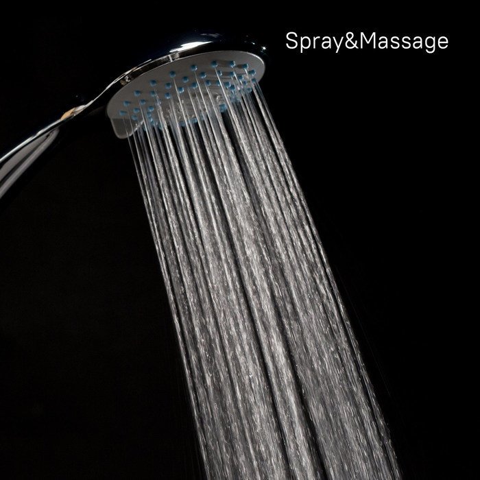 Лейка для душа, ABS-пластик, многослойное стойкое к истиранию никель-хромовое покрытие, 3 режима (Spray, Massage, Spray&Massage), рычажное переключение. Диаметр лейки: 97 мм.