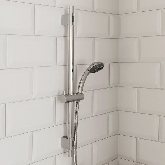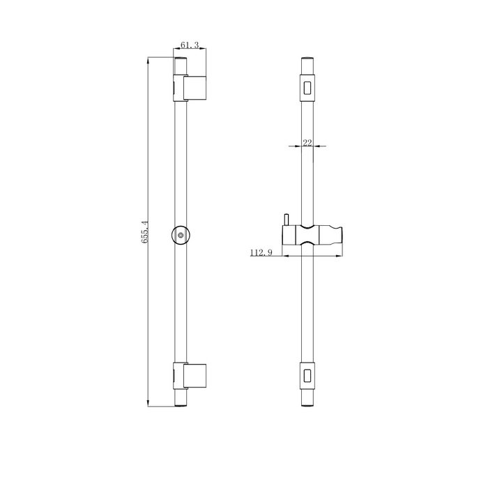 Стойка из нержавеющей стали, диаметр 22 мм, длина - 650мм, без хром-никелевого покрытия. Свободное верхнее крепление. Вентильный поворотный держатель. Крепления и держатель из ABS-пластика с покрытием хром. Упаковка - полиэтиленовый пакет с картонным топпером.