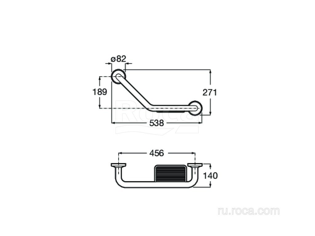 Angular grab bar 135˚ with soap holder bright stainless steel. Bright stainless steel. A816936001