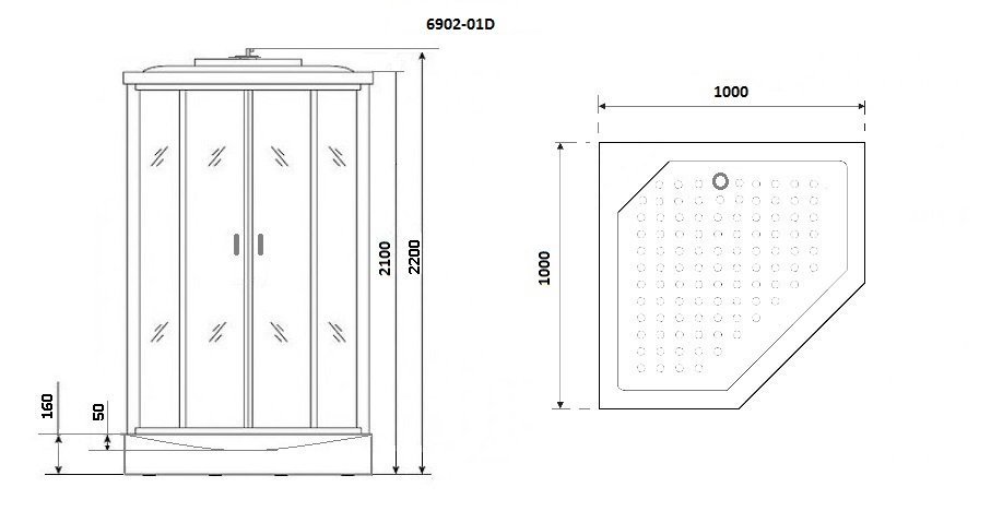 Душевая кабина Niagara Premium NG-6902-01D BLACK (1000х1000х2200)