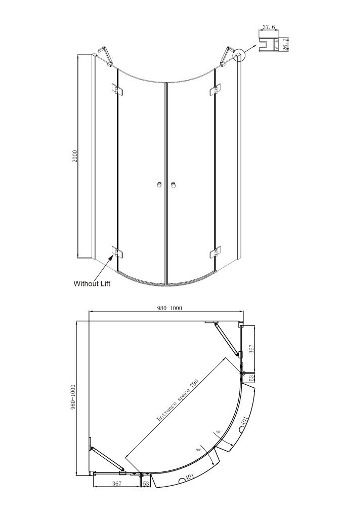 Душевое ограждение Ambassador Diamond 12011102 (1000x1000x2000)