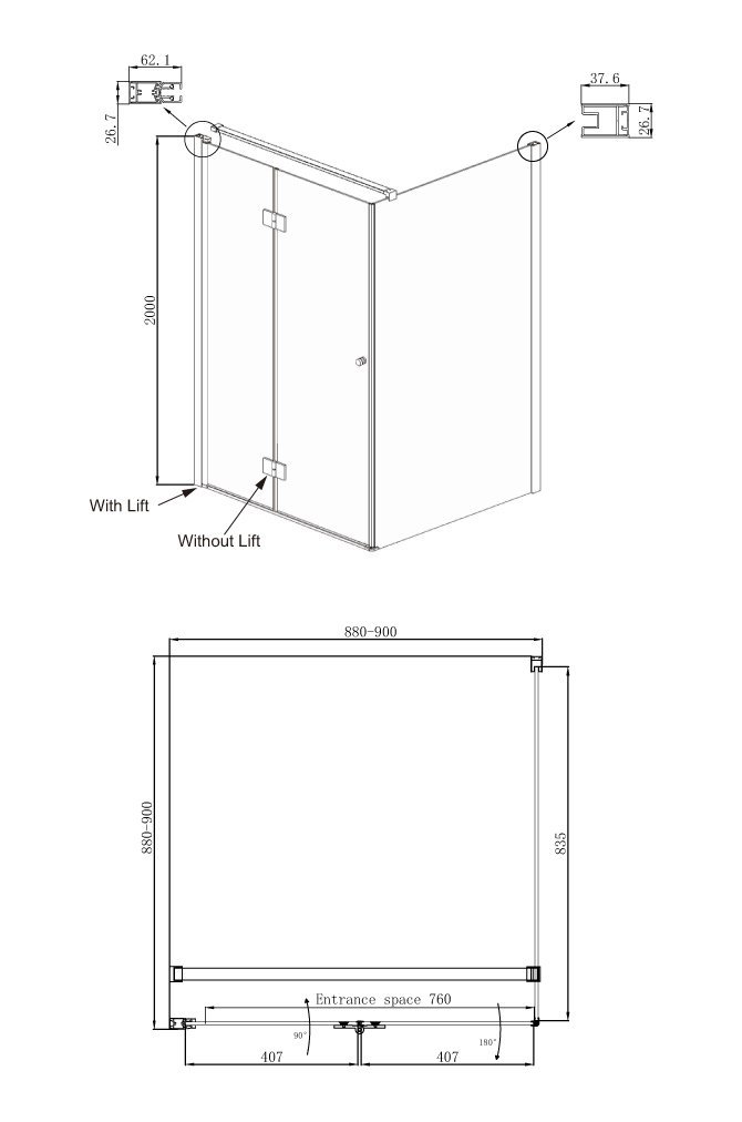 Душевое ограждение Ambassador Diamond 12011105L (900x900x2000)