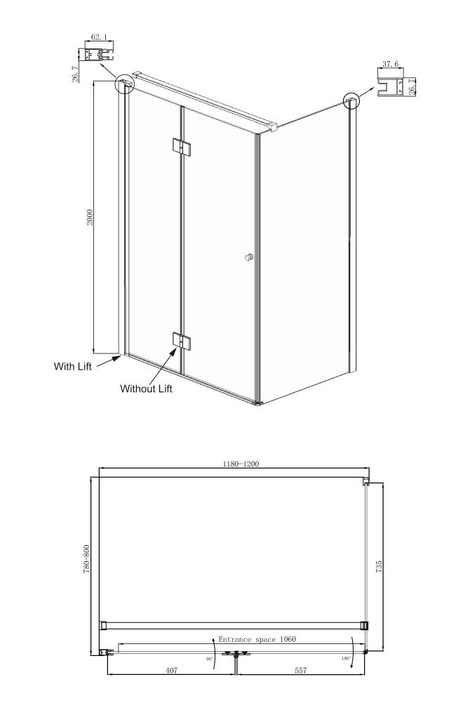 Душевое ограждение Ambassador Diamond 12011107L (1200x800x2000)