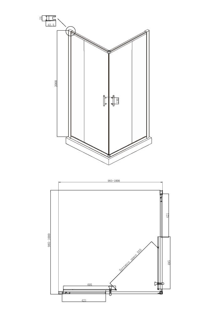 Душевое ограждение Ambassador Kingston 14011103 (1000x1000x2000)