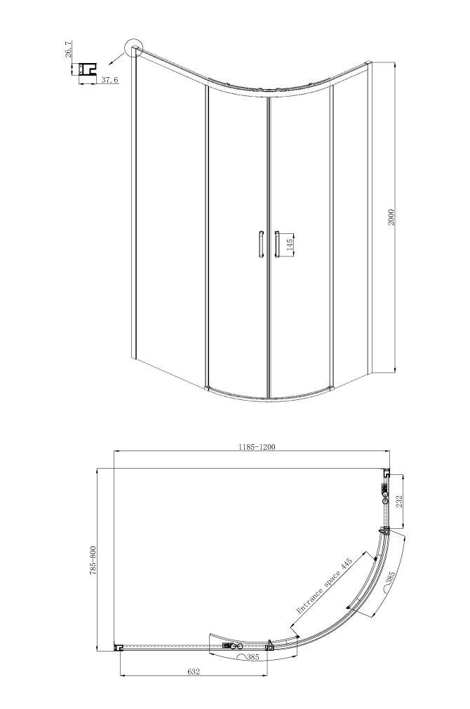 Душевое ограждение Ambassador Queen 11011103L (1200x800x2000)