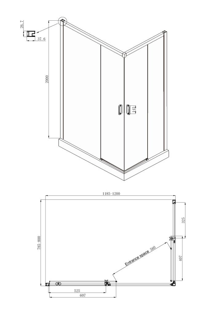 Душевое ограждение Ambassador Queen 11011106L (1200x800x2000)