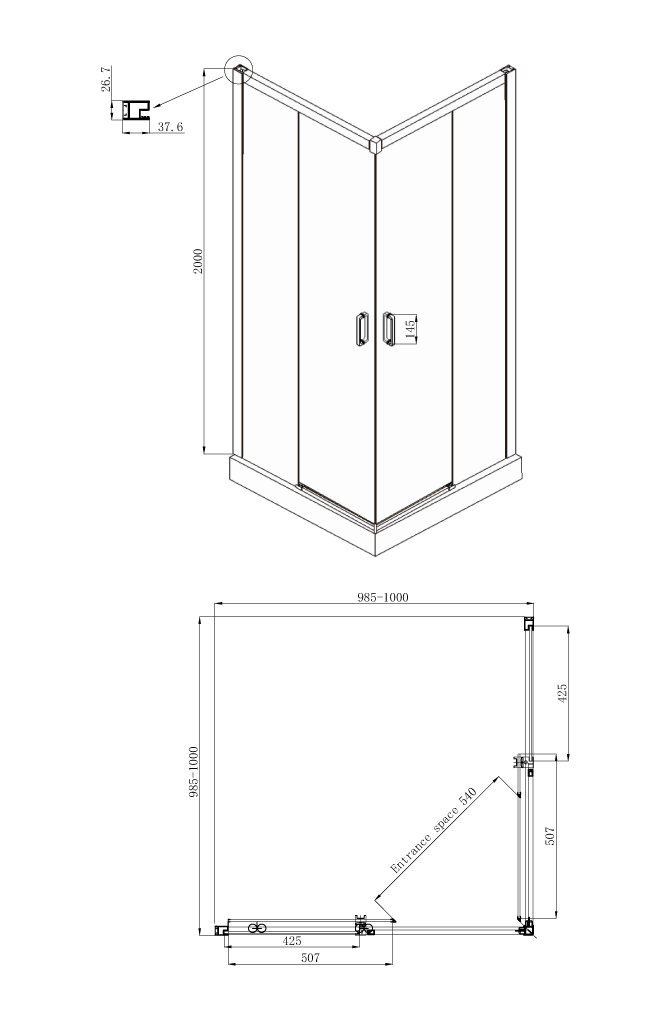 Душевое ограждение Ambassador Queen 11011204Black (1000x1000x2000)