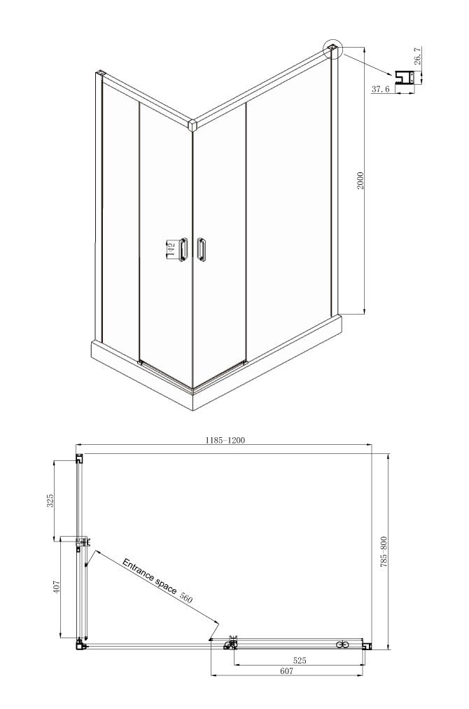 Душевое ограждение Ambassador Queen 11011205RBlack (1200x800x2000)
