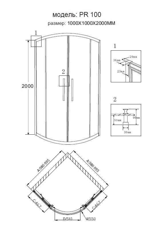 Душевое ограждение PR-100G (100x100x200) GROSSMAN