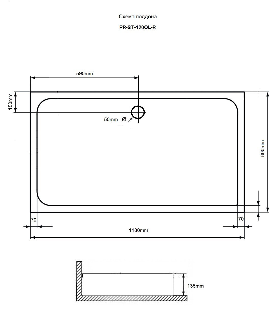 Душевой поддон PR-ST-120QL-R (120x80) GROSSMAN