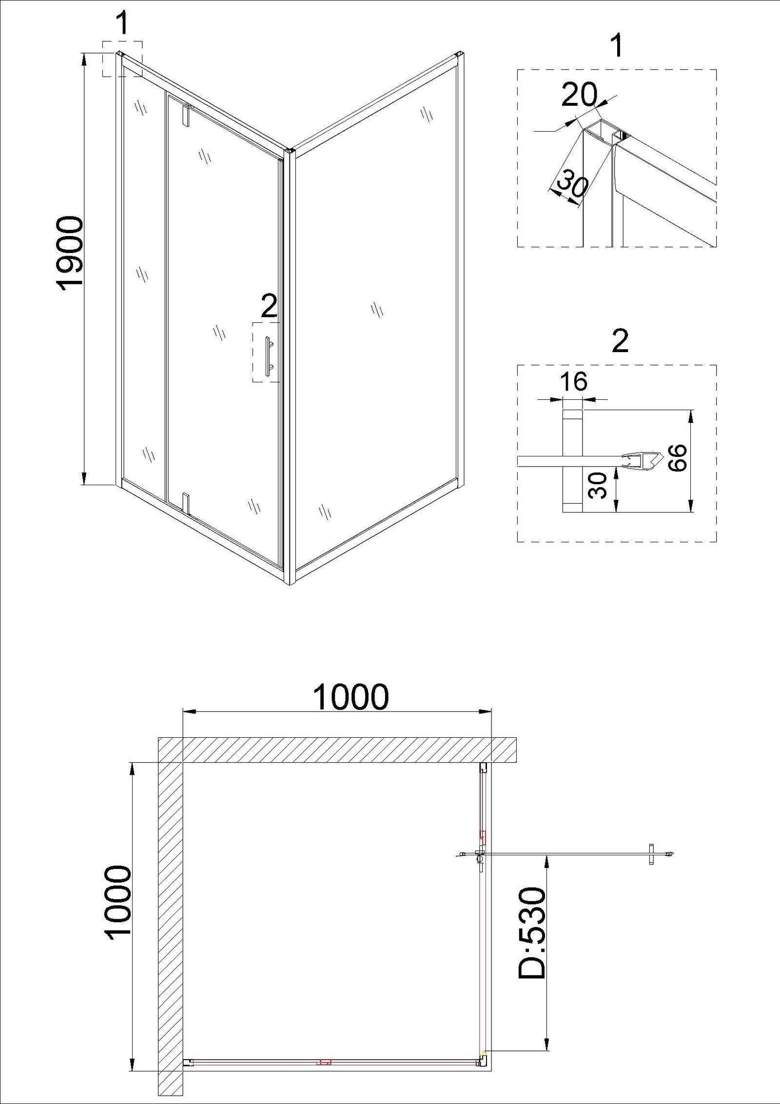 Душевое ограждение NG-0200-08 BLACK (1000х1000х1900) Niagara Nova