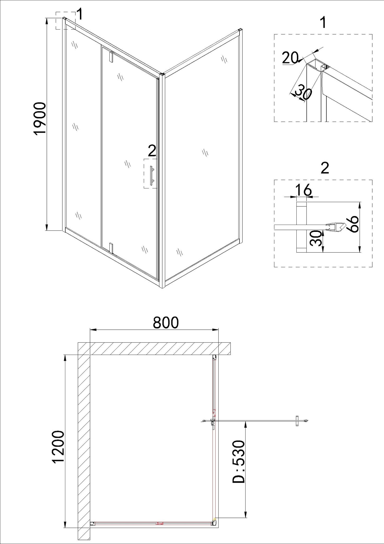Душевое ограждение NG-0220-08 BLACK (1200х800х1900) Niagara Nova