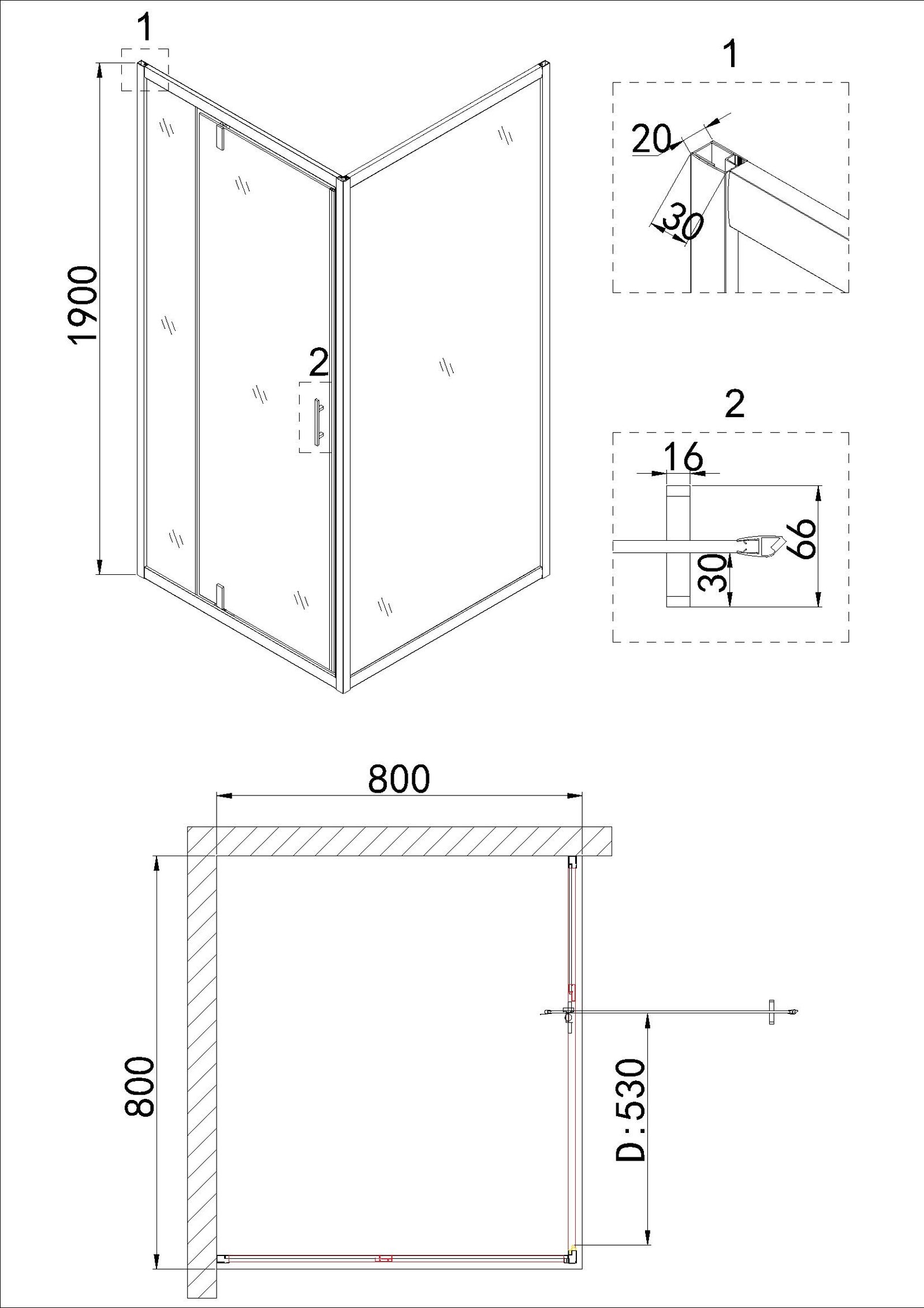 Душевое ограждение NG-0280-08 BLACK (800х800х1900) Niagara Nova